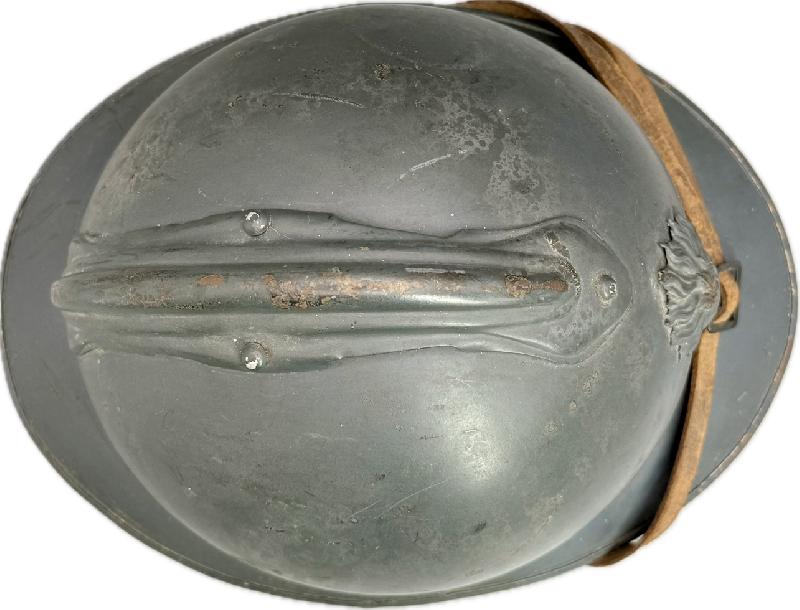 CASQUE FRANÇAIS ADRIAN INFANTERIE PREMIER TYPE Casque adrian d'infanterie du premier type, peinture bleu horizon brillante du début, insigne à la grenade.