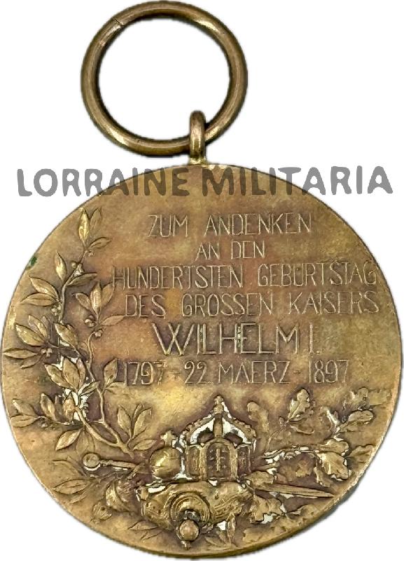 Lorraine Militaria MEDAILLE COMMEMORATIVE ALLEMANDE POUR LES 100 ANS DE WILHELM ILorraine Militaria