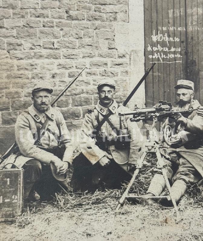 Lorraine Militaria PHOTOS CP MITRAILLEURS AVEC  SAINT-ETIENNE 1907 CAPOTES POIRET 1915 38ème TERRITLorraine Militaria Lorraine Militaria