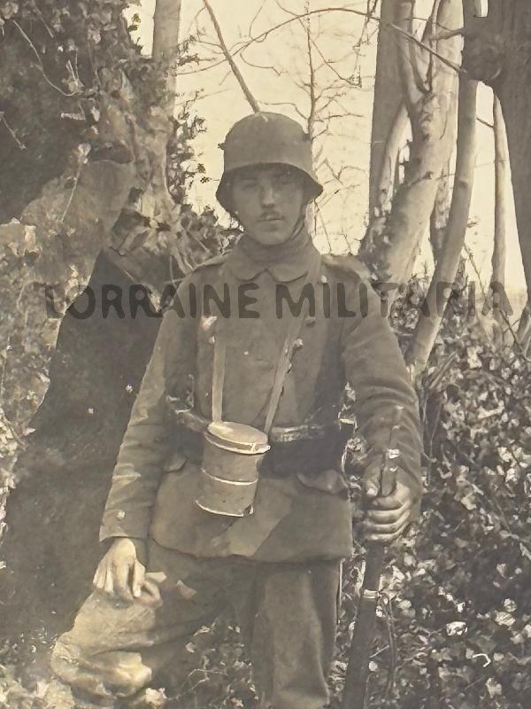 PHOTO CP SOLDAT ALLEMAND CAVALIER DEMONTE CHEVAULEGERS BAVAROIS 1917 Photo d'un cavalier démonté chevau-léger Bavarois avec stahlhelm et masque à gaz.