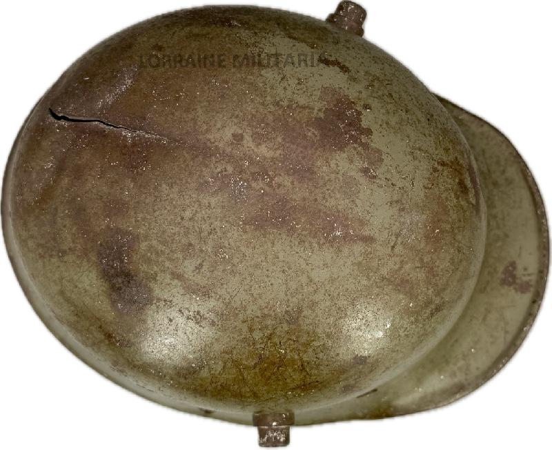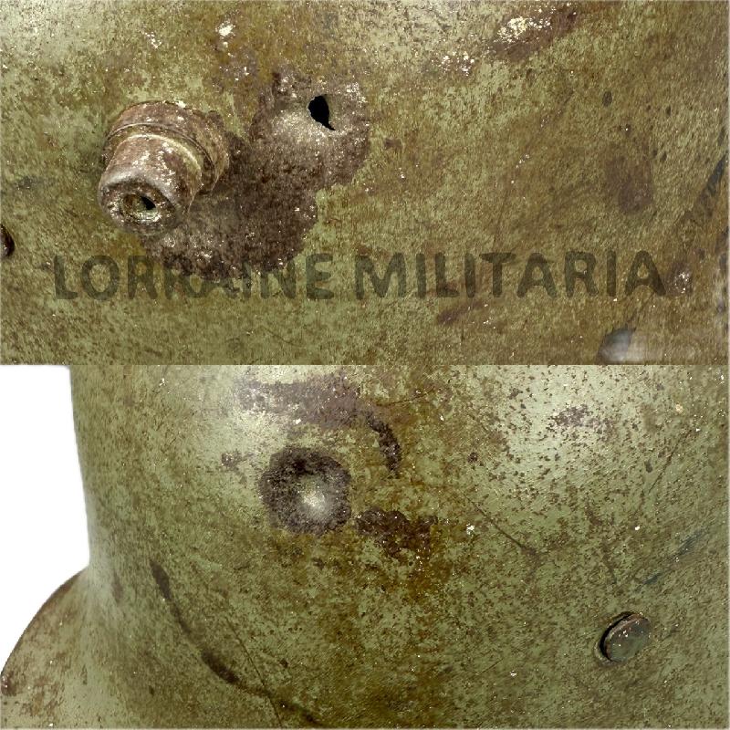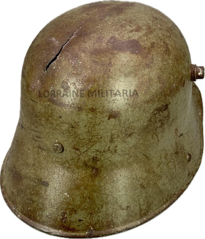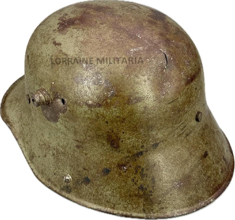 Lorraine Militaria CASQUE ALLEMAND STAHLHELM MLE 1916 FELDGRAU IMPACTS BATAILLE