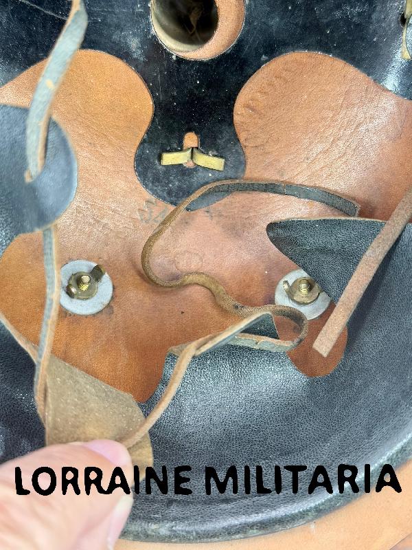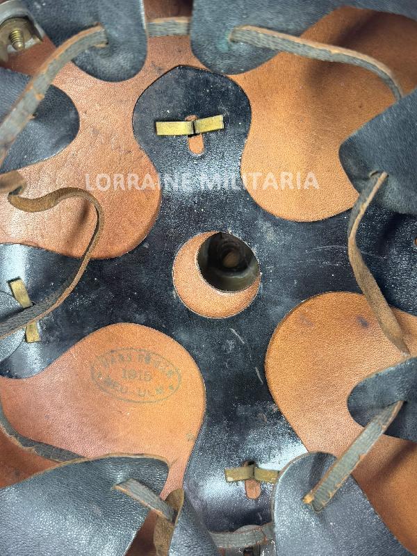 Bien marqué du fabricant et daté 1915. Bonne jugulaire, à écailles bombées des troupes montées, cocardes présentes. Plaque dite gros modèle fixée par vis. Pointe à vis (ne se dévisse pas, je n'ai pas forcé).