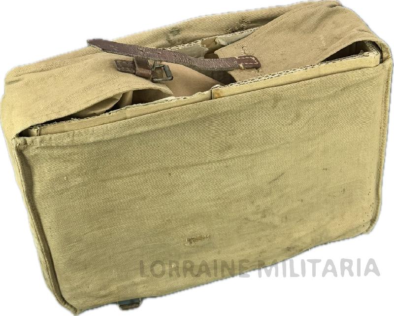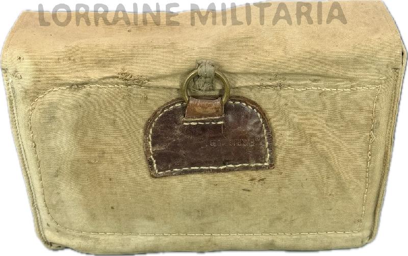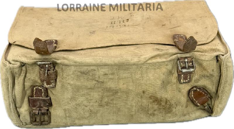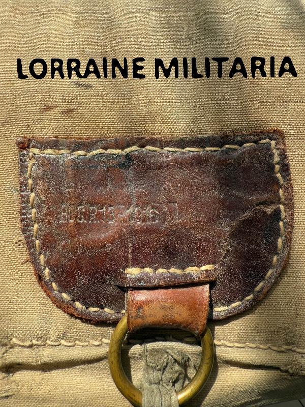 Il est confectionné en toile écrue, avec des passants cuir latéraux pour y fixer la tente et le manteau. Bien marqué et daté 1916.