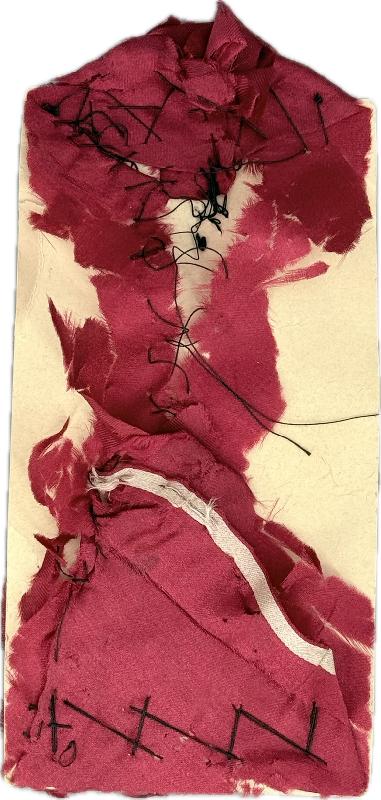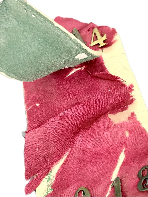 SOUVENIR PATTE D'EPAULE ALLEMANDE MODELE 1915 DU 51 ème REGIMENT D'INFANTERIE Souvenir d'un soldat français, patte d'épaule de bluse du IR 51 fixée sur un carton recouvert de soie rouge (très abimée) avec des chiffres métalliques 1914 / 1918.