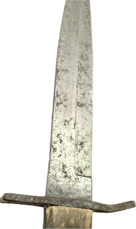 Celui-ci sort de grenier, corrosion légère sur l'ensemble extérieur du couteau. Il n'y a plus d'attache sur le fourreau. Manche bois complet, garde typique de chez Demag. Lame légèrement sale mais en très bel état, pas de fabricant, mais poinçon impérial.