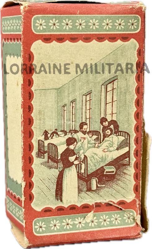 La boite représente 2 scenes militaire avec des infirmiers, le carton est en bon état, quelques traces d'usage et déchirures (voir photos).