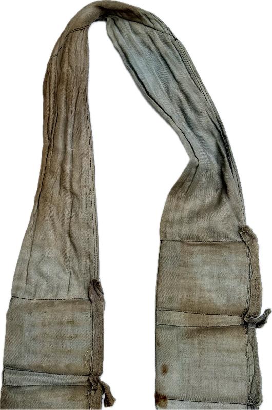 PATRONEN TRAGEGURT ALLEMANDE BANDOULIÈRE CARTOUCHIERE D'ALLEGEMENT Patronen Tragegurt, en toile gris bleu du premier modèle avec rubans cousus pour fixation sur la sangle de sac à pain lorsqu'elle est positionnée sur les cartouchières autour du cou.