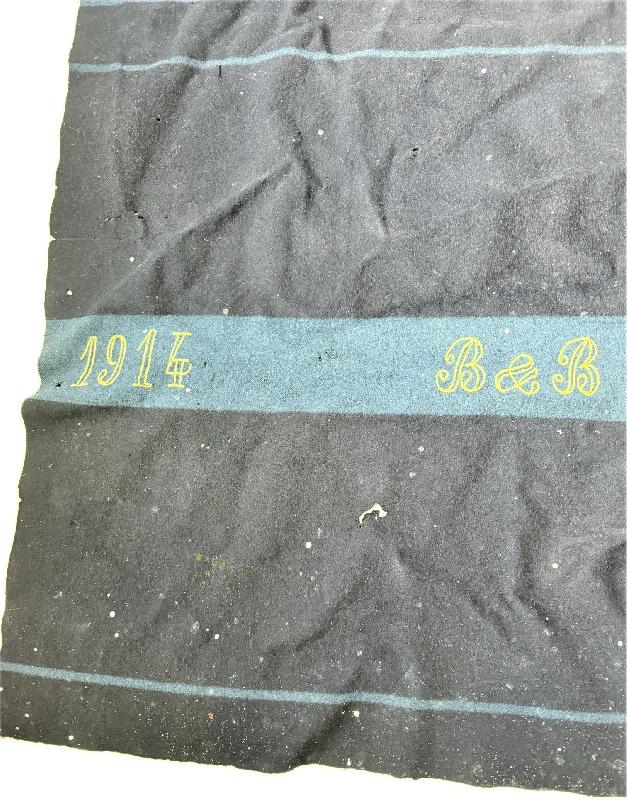 COUVERTURE FRANÇAISE GUERRE DATEE 1914 Couverture en laine bleue bien marquée, matriculée, et datée 1914.