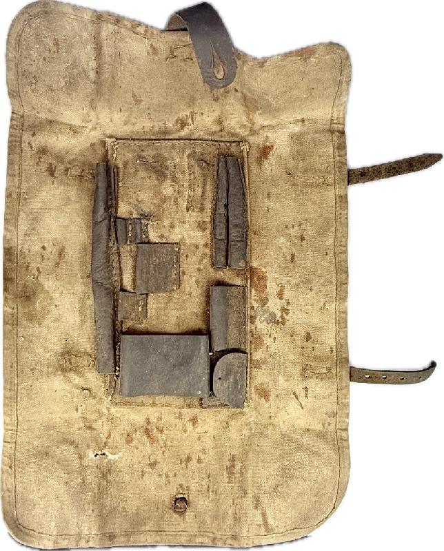 TROUSSE ACCESSOIRES ENTRETIEN FUSIL-MITRAILLEUR CHAUCHAT 1915 Trousse en toile pour l'entretien du fusil-mitrailleur CSRG 1915 chauchat.