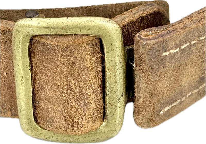 CEINTURON ALLEMAND POUR TROUPES MONTEES BOUCLE LAITON DU MJB 14 1915 Ceinturon spécifique avec boucle laiton, en cuir brun des troupes montées.