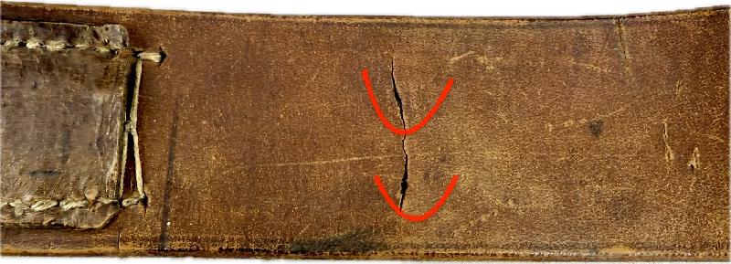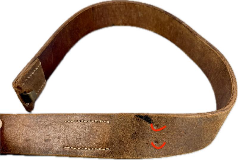 Prés de la patelette de réglage de la boucle, il y a 2 petits trous dans le cuir qui sont traversants (voir photos soulignées rouge).