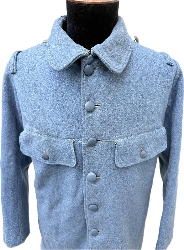 Capote Poiret troupe réglementaire modèle 1914 du 3ème type avec deux poches de poitrine en drap bleu horizon.