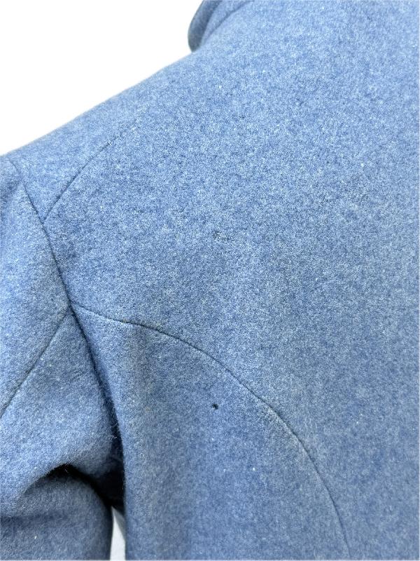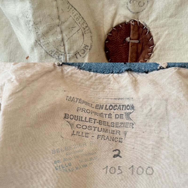 Veste en bon état général, quelques léchures et usures sur le drap, deux trous de mites réparés anciennement, un sur le devant et un sur l'arrière d'une manche (voir photos). Tampons d'un costumier ainsi que le commission de réception mais difficilement lisible (1918/1919?).