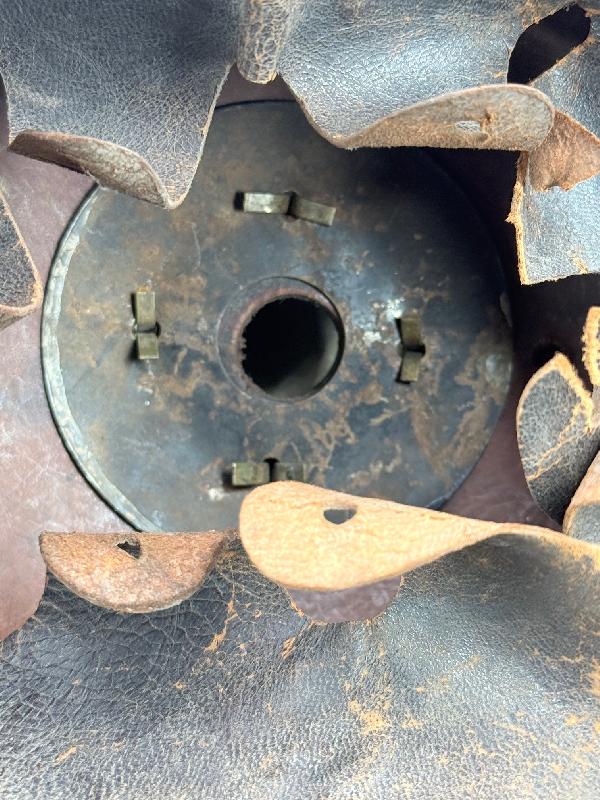 Celle-ci est en bon état général, des coups dans le vernis du casque sur l'arrière, coiffe présente avec des accidents sur les dents de loup (voir photos). Tampon du fabricant à l'intérieur et bien marqué du 27ème régiment d'infanterie, de la compagnie des mitrailleurs (MGK) et daté 1907 / 1910.