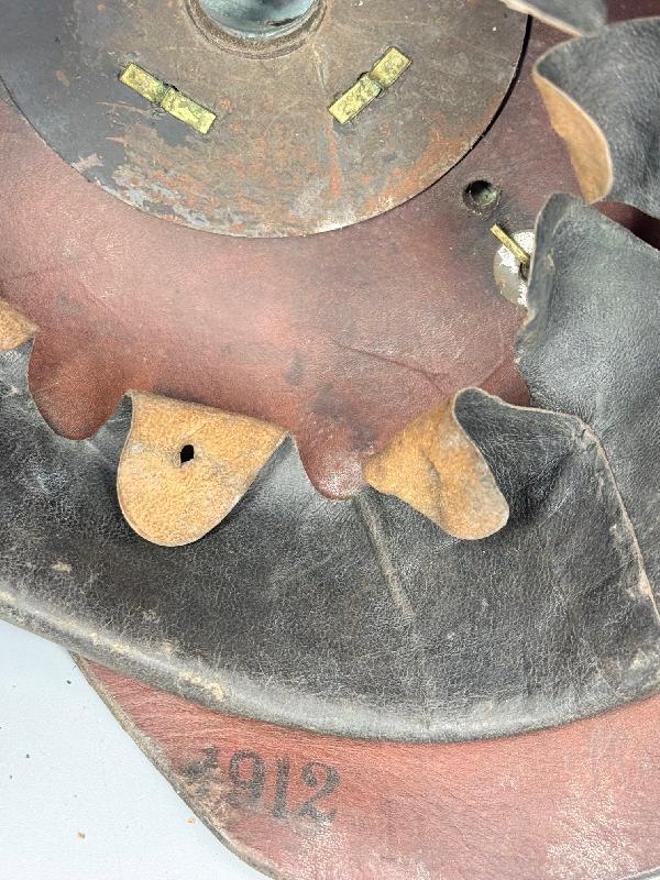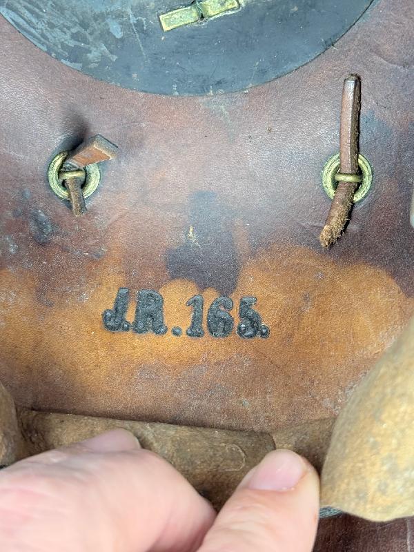 Celui-ci est dans son jus, complet avec sa bonne jugulaire ainsi que les cocardes. Bien marqué au fer du 165 IR et daté 1912 sur la nuquière.