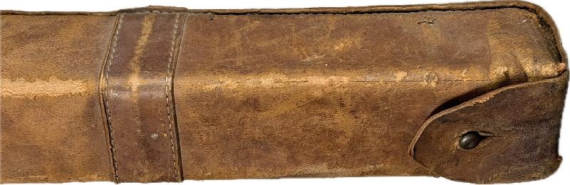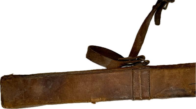 Etui cuir avec sangle de transport en bandoulière, bon état, traces d'usages.