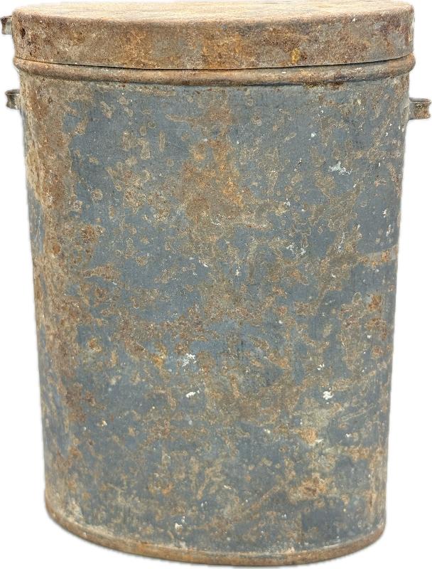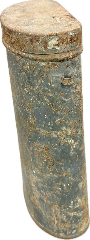 BOITE DE MASQUE A GAZ FRANÇAIS M2 DEMI-OVALE Boite en tôle pour masque à gaz M2, modèle demi-ovale.