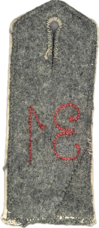 PATTE D'EPAULE MODELE 1915 DE BLUSE BAVAROISE 31 IEME IR OU RIR Patte d'épaule modèle 1915 Bavaroise en drap feldgrau du 31ième régiment d'infanterie ou de réserve.