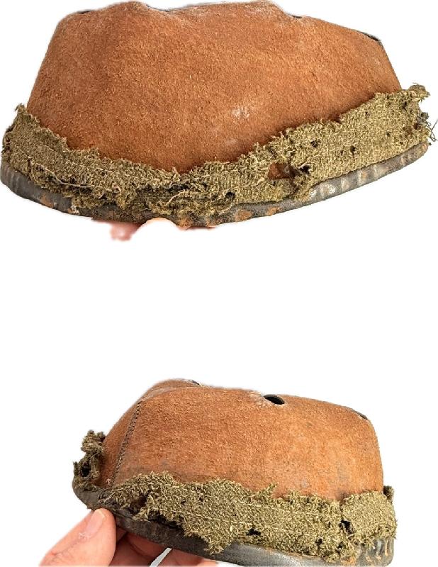 Coiffe en cuir du premier type avec bandeau de laine mité fortement, celle-ci ne tient plus dans le casque (à restaurer). Jugulaire absente.