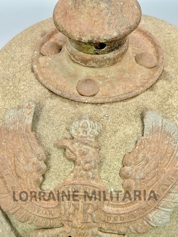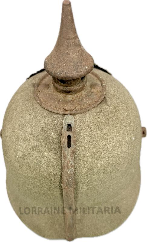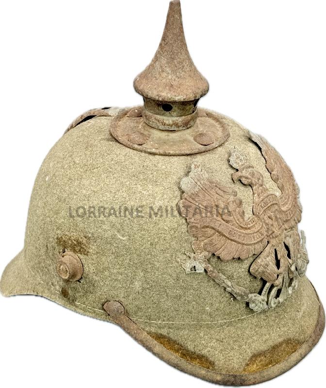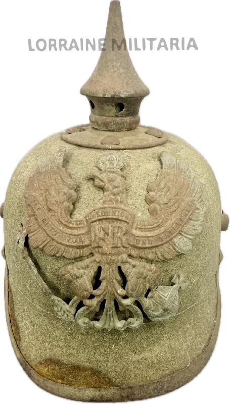 CASQUE A POINTE PRUSSIEN ERSATZ EN FEUTRE FELDGRAU DU GRENIER Casque à pointe prussien en feutre avec garnitures fer peintes en feldgrau.