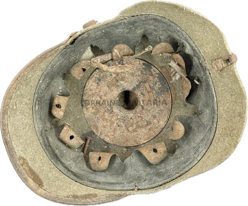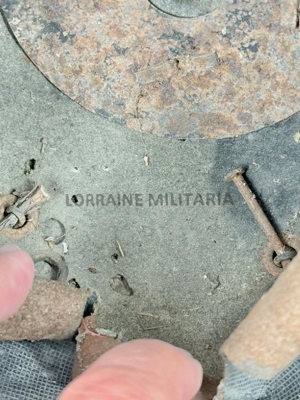 Celui-ci sort de grenier, il est dans son jus. Belle bombe en feutre avec garnitures métalliques qui possèdent encore de la peinture feldgrau.