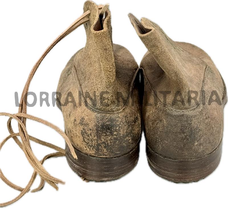 Lorraine Militaria PAIRE DE BRODEQUINS TROUPES MODELE 1917 ETAT NEUF DE STOCK DATEE 1949