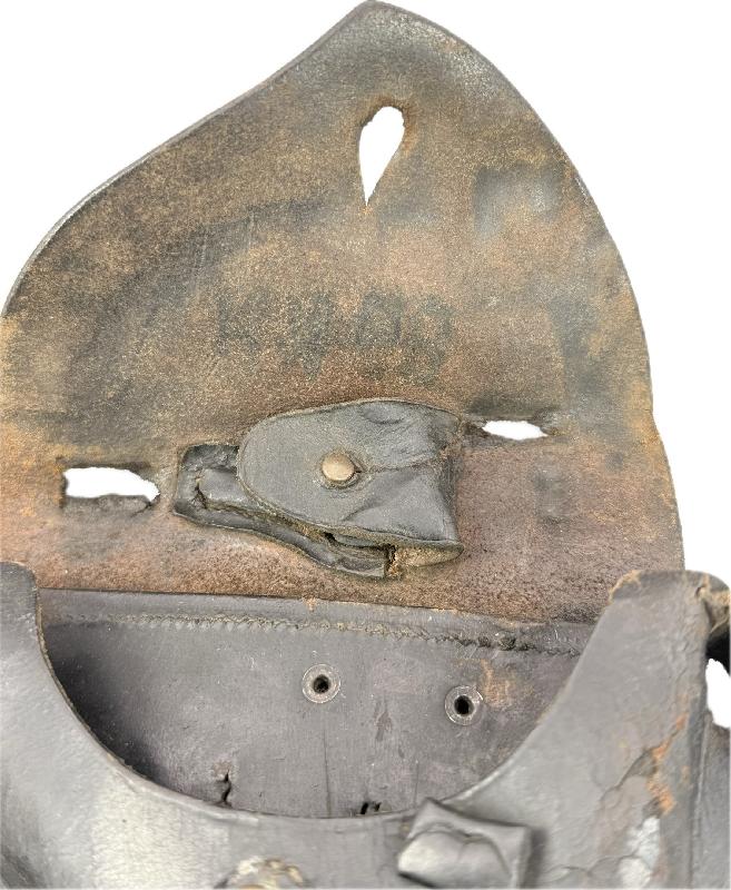 Celui-ci est en cuir noir, il est en état moyen, 2 trous d'usure sur le rabat supérieur, logement de la clé dans le rabat très abimé. Reste de tampons illisibles. VOIR PHOTOS