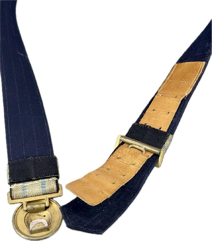 Celui-ci est en très bon état, aucun défauts, aucun trous de mites sur la laine bleue. Belle boucle en zinc dorée, complet avec ses deux passants.
