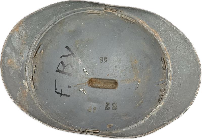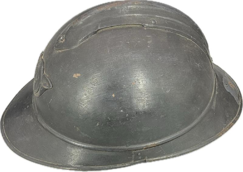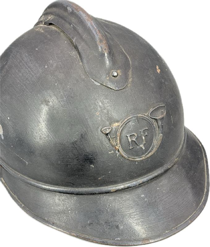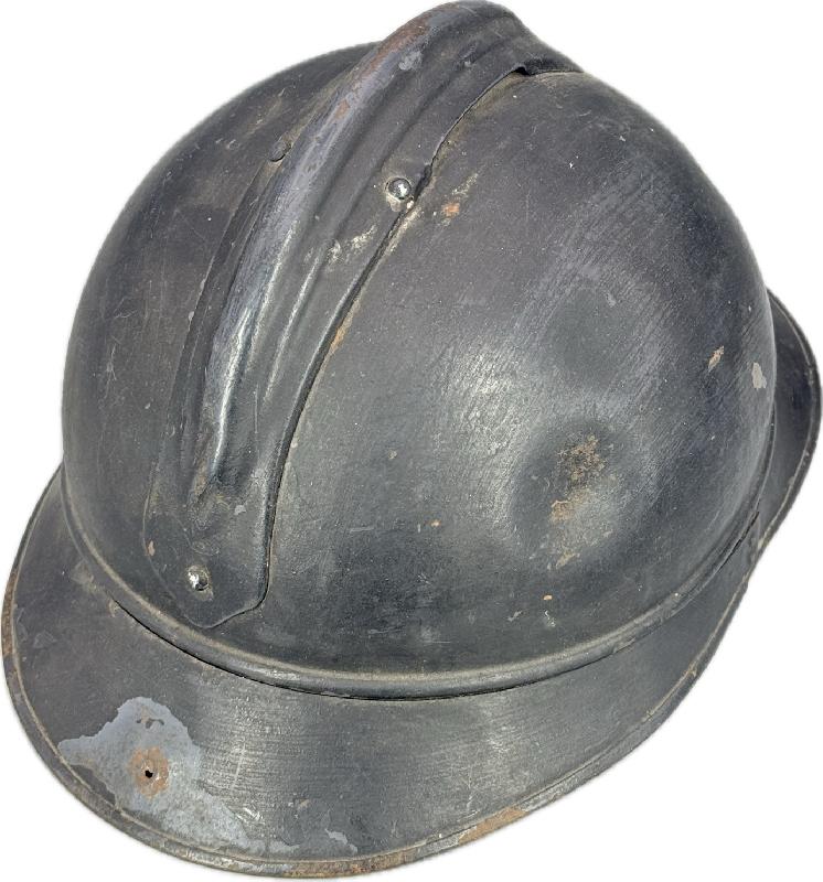 Il manque la coiffe ainsi que la jugulaire. Celui-ci a été repeint en gris artillerie foncé au dessus du bleu horizon clair à l'époque.