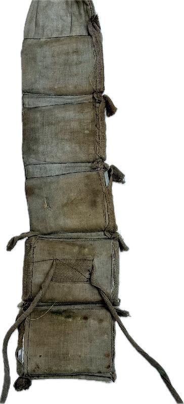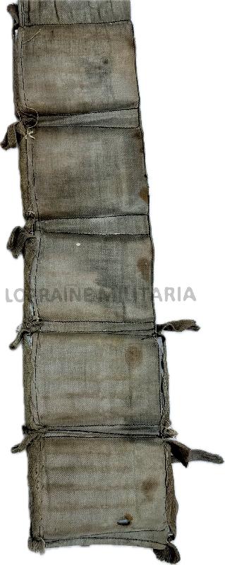 PATRONEN TRAGEGURT ALLEMANDE BANDOULIÈRE CARTOUCHIERE D'ALLEGEMENT Patronen Tragegurt, en toile gris bleu du premier modèle avec rubans cousus pour fixation sur la sangle de sac à pain lorsqu'elle est positionnée sur les cartouchières autour du cou.