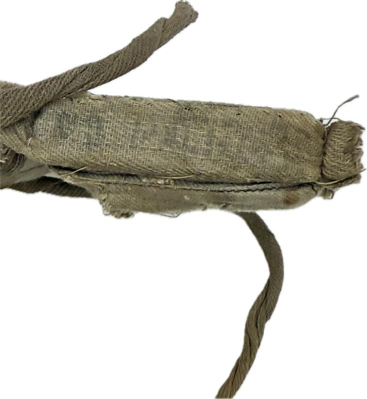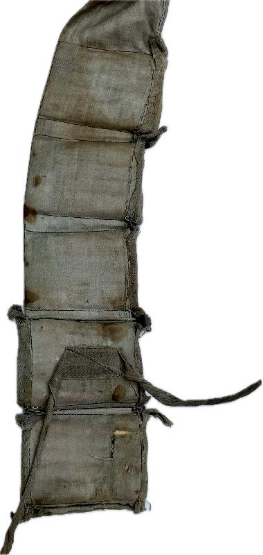 Celle-ci est en relativement bon état, 2 petites déchirures (voir photos). Elle a soigneusement été démontée pour remplacer les clips de 7,92 par des clips moulés en plastique. Marquage présent sur une des languettes mais difficilement lisible.