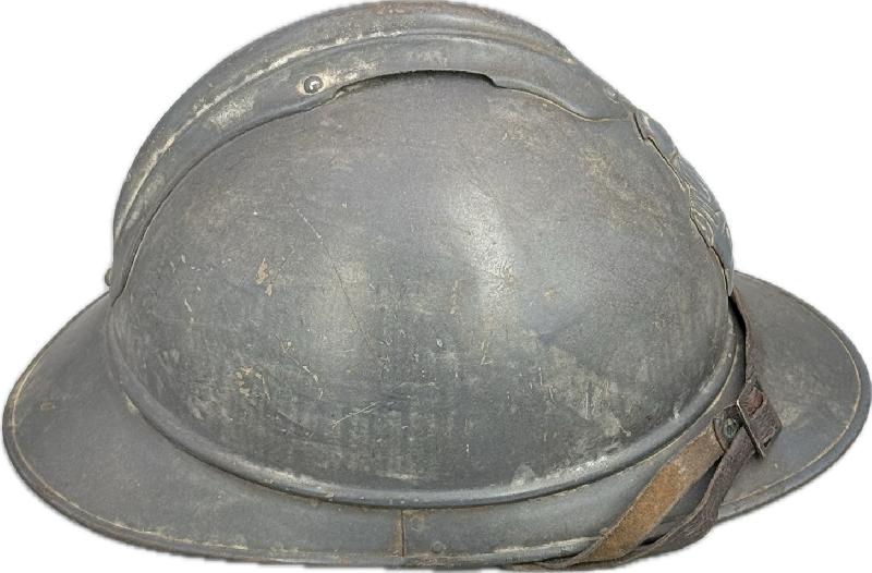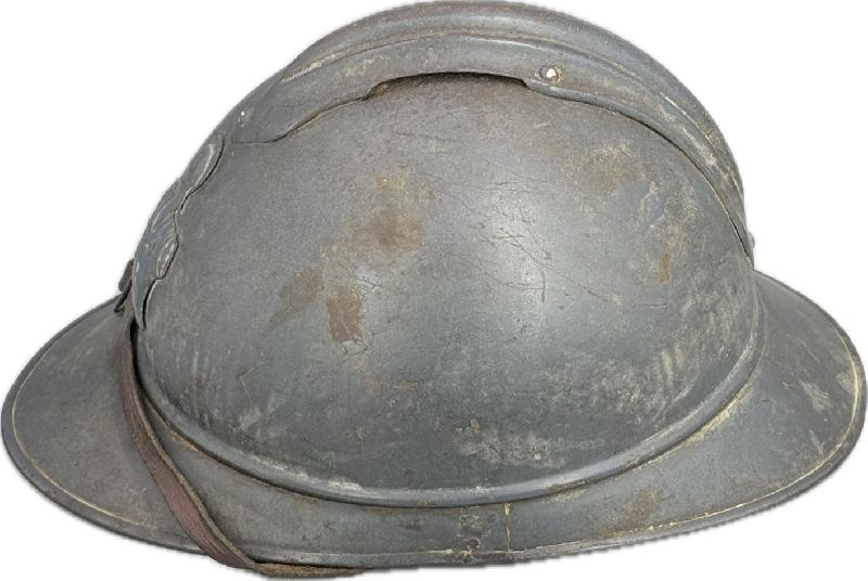 CASQUE ADRIAN TROUPE FRANÇAIS DU GENIE BLEU HORIZON COMPLET JUS Casque Adrian du génie complet avec sa coiffe et jugulaire.