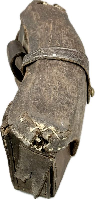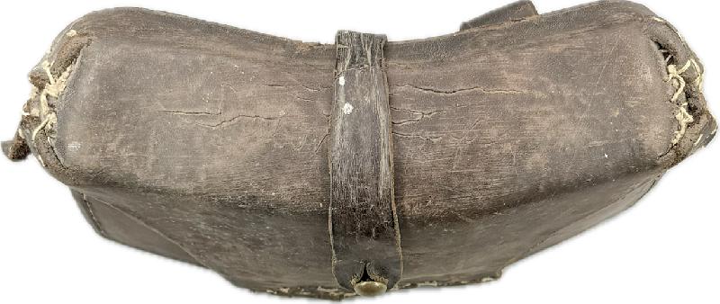 Celle-ci sort de grenier, elle est dans son jus, à nettoyer. Il y a des coutures renforcées par endroits, travail d'époque, un des passants latéraux de fermeture est cassé. Elle a subi à l'époque une transformation par l'ajout d'une patte de fermeture sur le rabat supérieur, modification réglementaire car la cartouchière fermait mal.